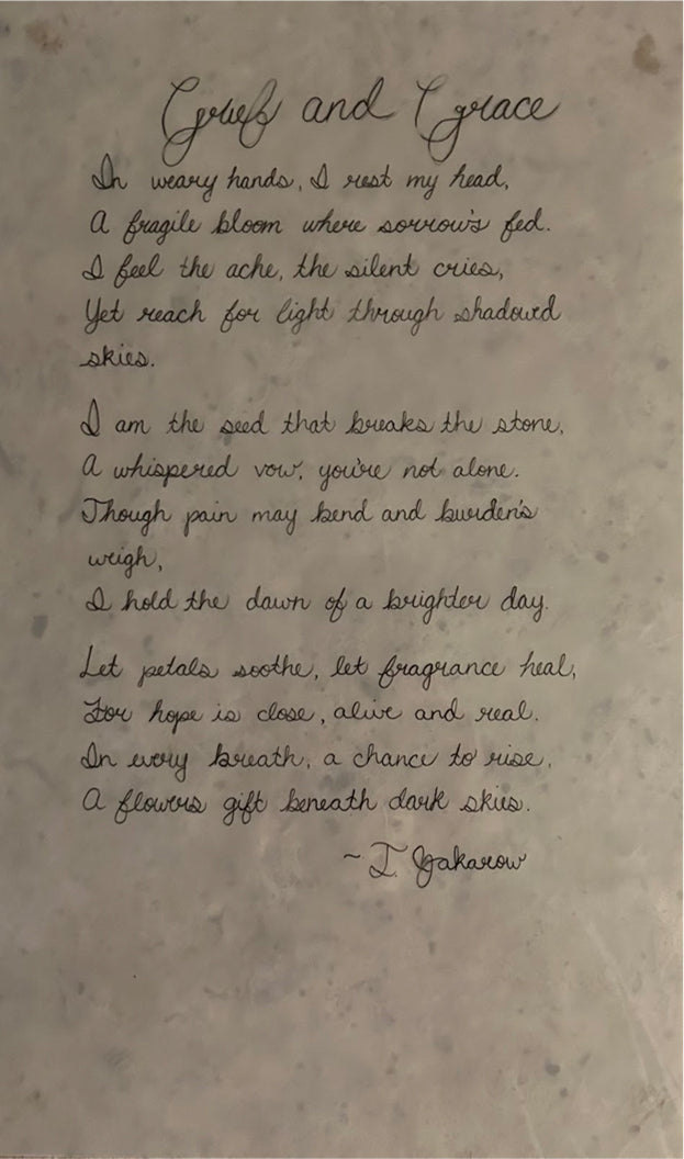 handwritten poem is written on drafting film, mounted to handmade mulberry paper and framed