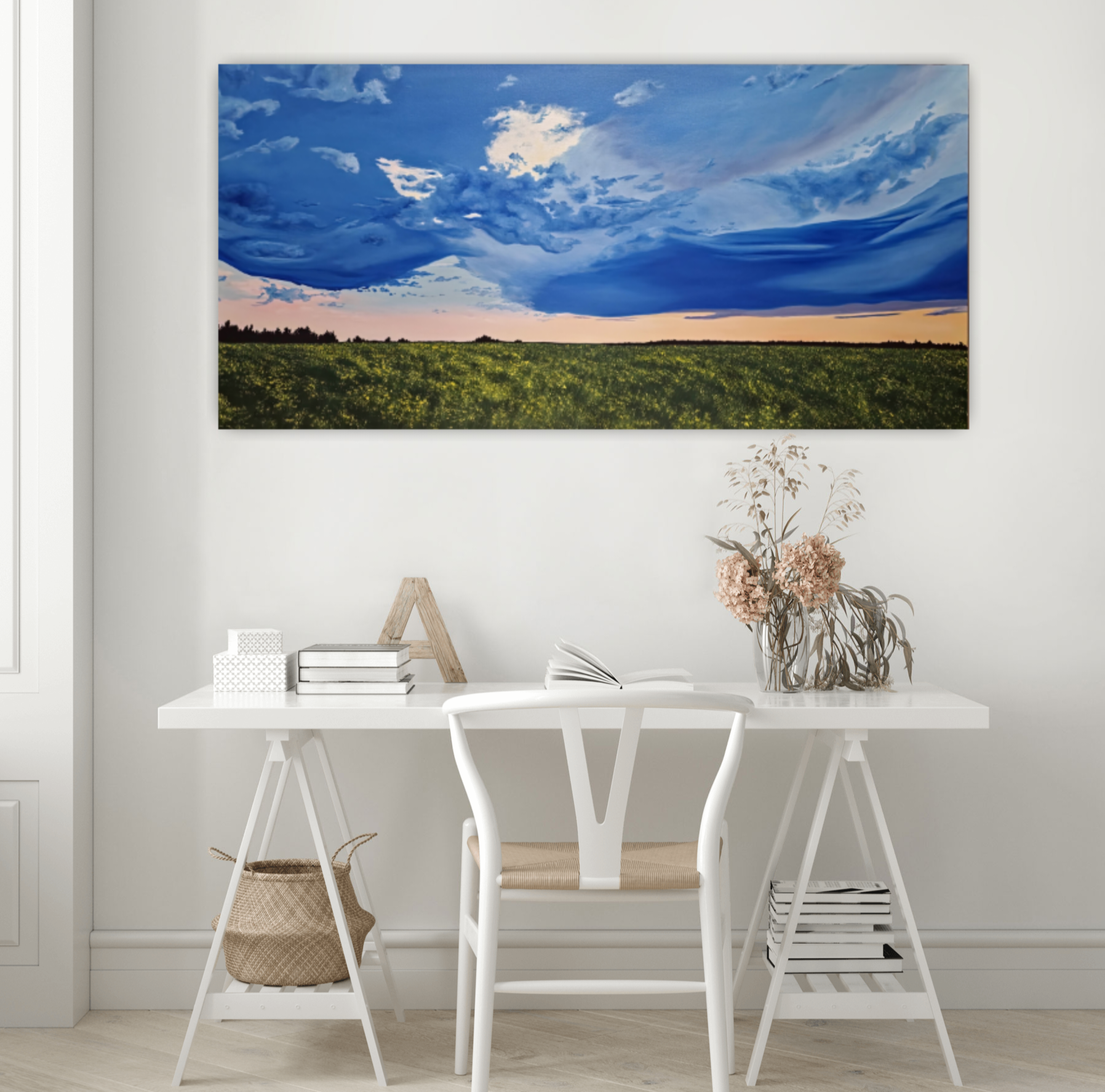 18"x36" oil on canvas 1.5" gallery wrapped canvas finished in black.