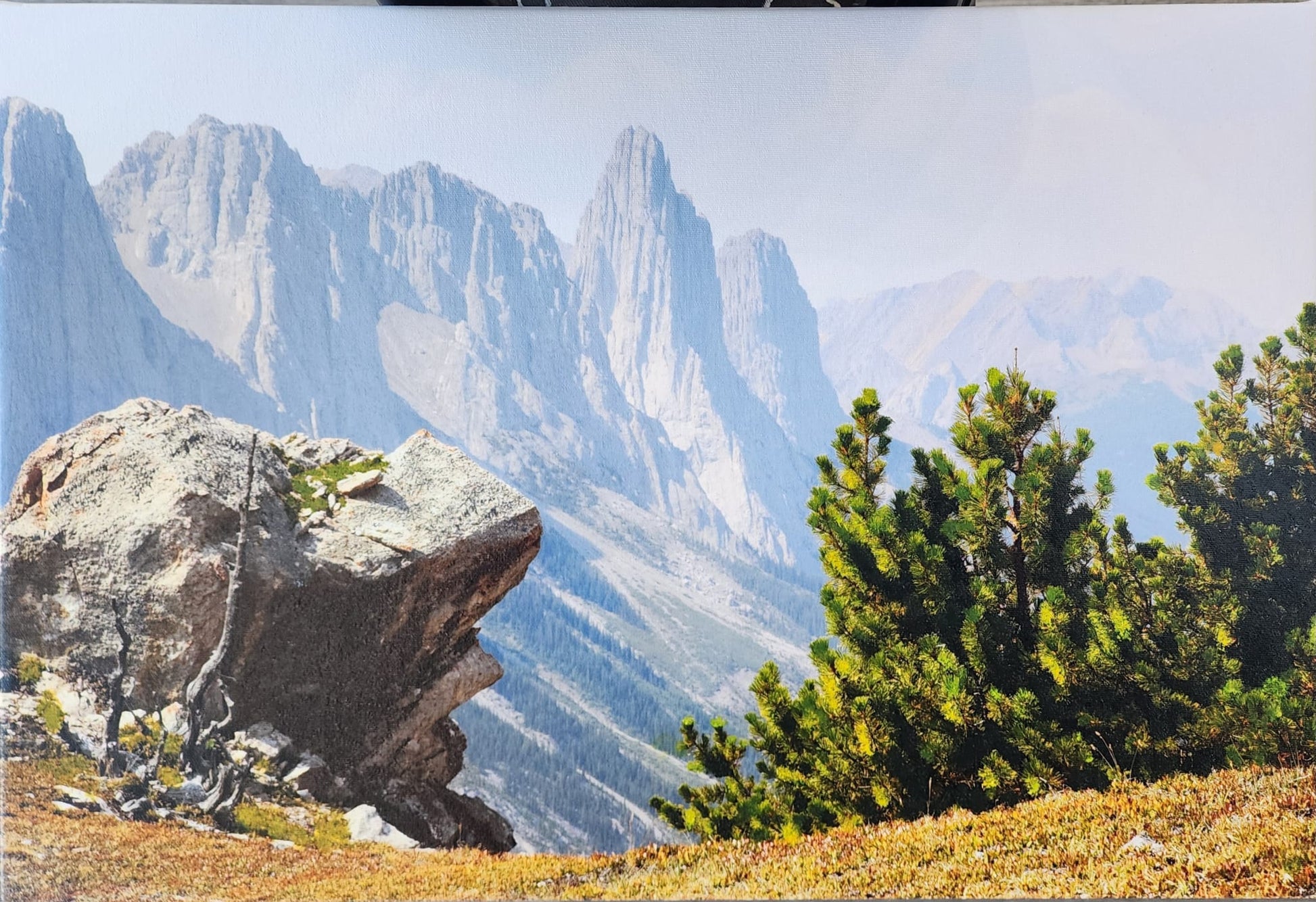 This view is from the ridge of Mount Norquay. From left to right are the 3 peaks of Mount Edith, Mount Louis (the sharp one), and Mount Fifi.
